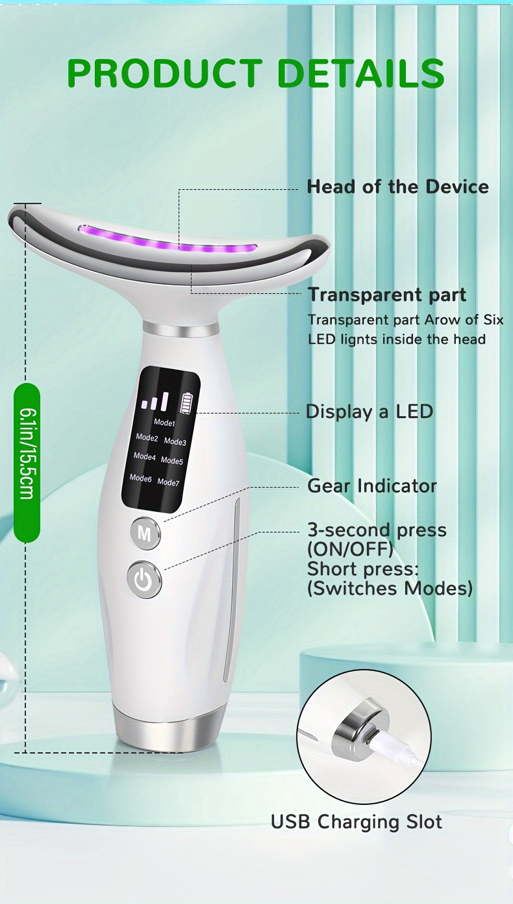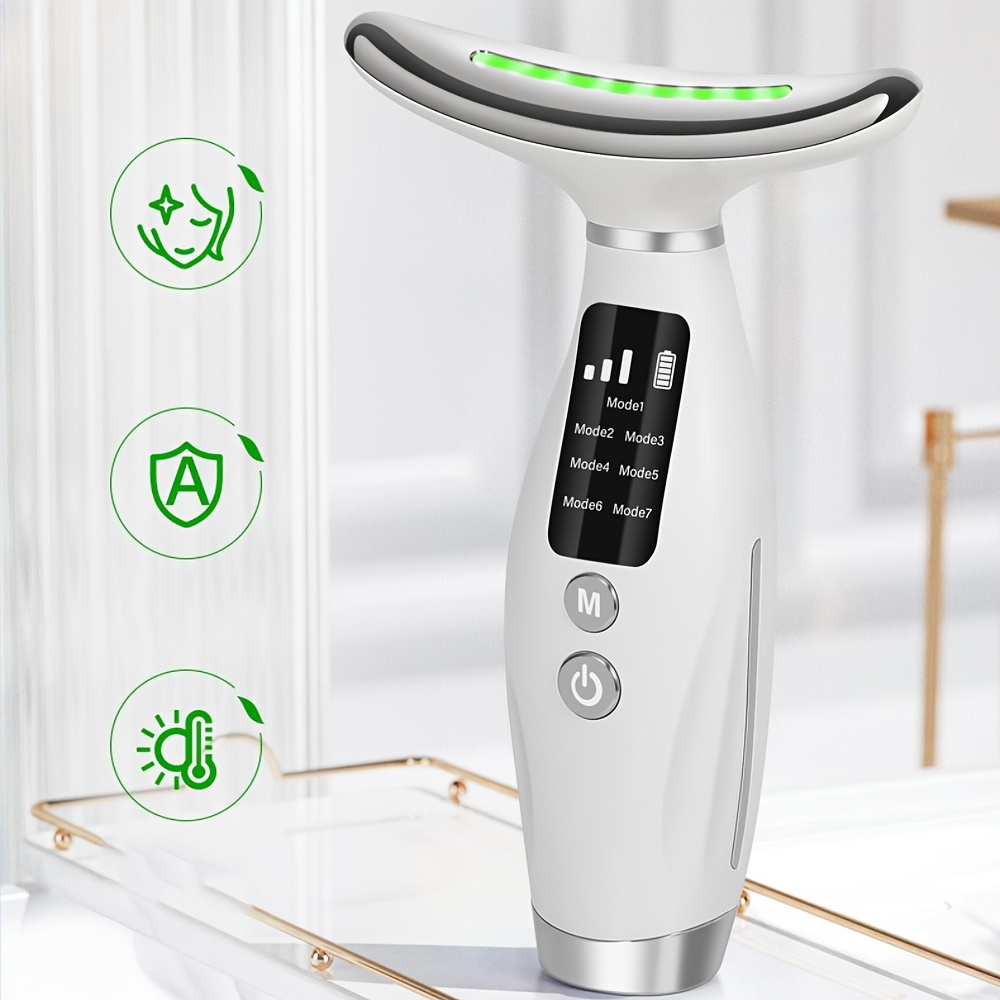 This advanced neck beauty device uses gentle heat therapy and vibration technology to help tighten, lift, and smooth your skin for visible results.
